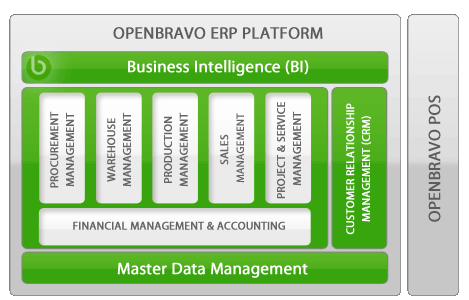 Openbravo ERP has been designed with broad business functionality to help businesses improve overall performance. It is based on a single, integrated database model covering all key application areas of a complete business management system, including seamless integration to Business Intelligence (BI) and Point of Sale (POS).